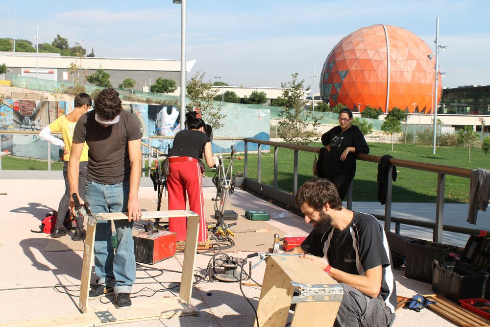 Taller impartit de manera conjunta per Straddle 3 i Todo por la Praxis amb la col·laboració de professors de l'Escola d’Art i Superior de Disseny Pau Gargallo. El taller està orientat a generar mobiliari d'ús temporal a l'espai públic, utilitzant materials reciclats. És un taller de construcció col·lectiva de infraestructures nòmades i mòbils, que poden ser utilitzades en activitats reivindicatives o en situacions emergents de mobilització ciutadana. En un moment en que l'ús de l'espai públic recupera amb força la condició d'escenari de visibilitat i reivindicacions col·lectives, aquest tipus d'elements poden donar suport a les mobilitzacions, però també esdevenir motors de generació de situacions lúdiques i festives de suport.