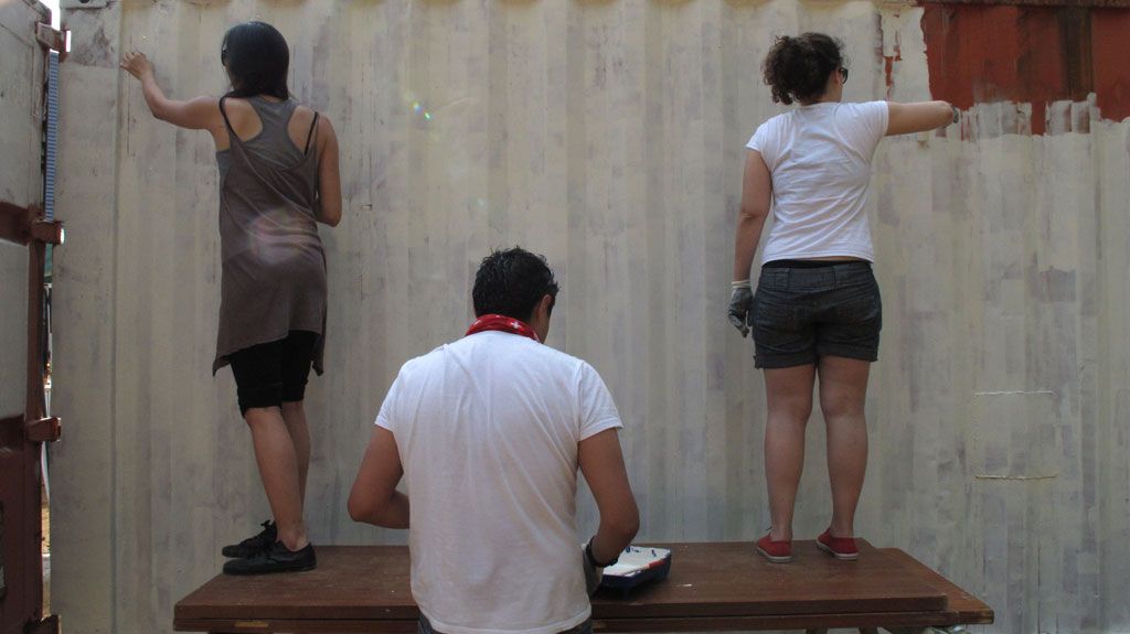 Uno de los ejes de la propuesta es el uso de materiales reciclados. Se recopilaron y utilizaron varios elementos de diferentes procedencias. Una de las piezas clave fue un contenedor proveniente del puerto de Barcelona a precio de chatarra. El contenedor sirvió simultáneamente para varios fines: apoyo para tierras y rampas, espacio habitable, almacén, taller y/o local social,... lo que disparó el componente de autogestión del proceso para que se mantuviese en el tiempo, suponiendo un aliciente adicional para que los jóvenes se esforzasen la construcción de un espacio público, al tener también como objetivo la construcción de una 'sede' para su incipiente asociación. Además, se trabajó en un mapa que documente las distintas procedencias de los materiales.