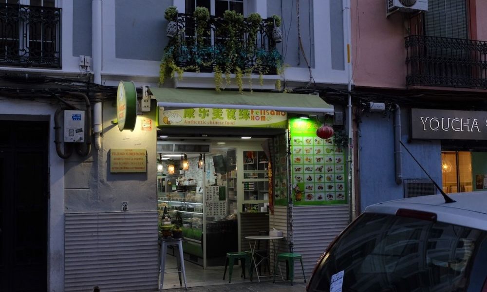 Empezando el día con un zongzi, una delicia de arroz glutinoso envuelto en hojas de caña de bambú, y un baobao en Tian Tian Da Rou Bao, uno se siente inmediatamente transportado a un ambiente familiar. El nombre del restaurante, traducción fonética directa del pinyin chino, destaca entre el paisaje urbano y la arquitectura española. Al pasar frente a Electronic Yongfeng, es difícil no fijarse en la variedad de productos, una mezcla vibrante que parece prepararse para la próxima Fiesta de la Primavera; o quizá sean restos de años anteriores, una mezcla de lo viejo y lo nuevo, un tema común en estos espacios de maravilla en constante evolución. Siguiendo a un camión de comida, cargado de mercancías que se elevan sobre su portador; este podría parecer inusual, infantil, incluso festivo para un forastero, pero aquí, representa el trabajo diario, el ajetreo de quienes dirigen estos negocios. Como telón de fondo, la estación de tren, símbolo de movimiento y cambio constantes, al igual que el propio Barrio Chino. Caminando por las calles, la sensación de viajar en el tiempo se hace más profunda. Por un lado, se aprecia un esfuerzo por mimetizarse con la cultura local, como demuestran los nombres españoles que adoptan los comercios. Por otro lado, es palpable la preservación del pasado, reflejando tendencias y estilos de otra época. Los nombres chinos de las peluquerías por ejemplo, se traducen al "estilo y moda occidentales", llamándose, por ejemplo, Peluquería Carolina, en español. Esta dualidad se hace más evidente cuando me paro frente al Restaurante Felisano Food. El nombre, posiblemente un juego de palabras con el inglés 'feels like home', o Feliciano [fe-li-ciano] incluso “feliz año”, que significa felicidad y suerte, pone de relieve la transición de la versión china. Es un lugar donde conviven el deseo de pertenencia y la asimilación, donde la comida y las imágenes se entrelazan, donde cada esquina cuenta una historia de mudanza, adaptación y espíritu perdurable de familias, desde 2005, en un mundo nuevo.